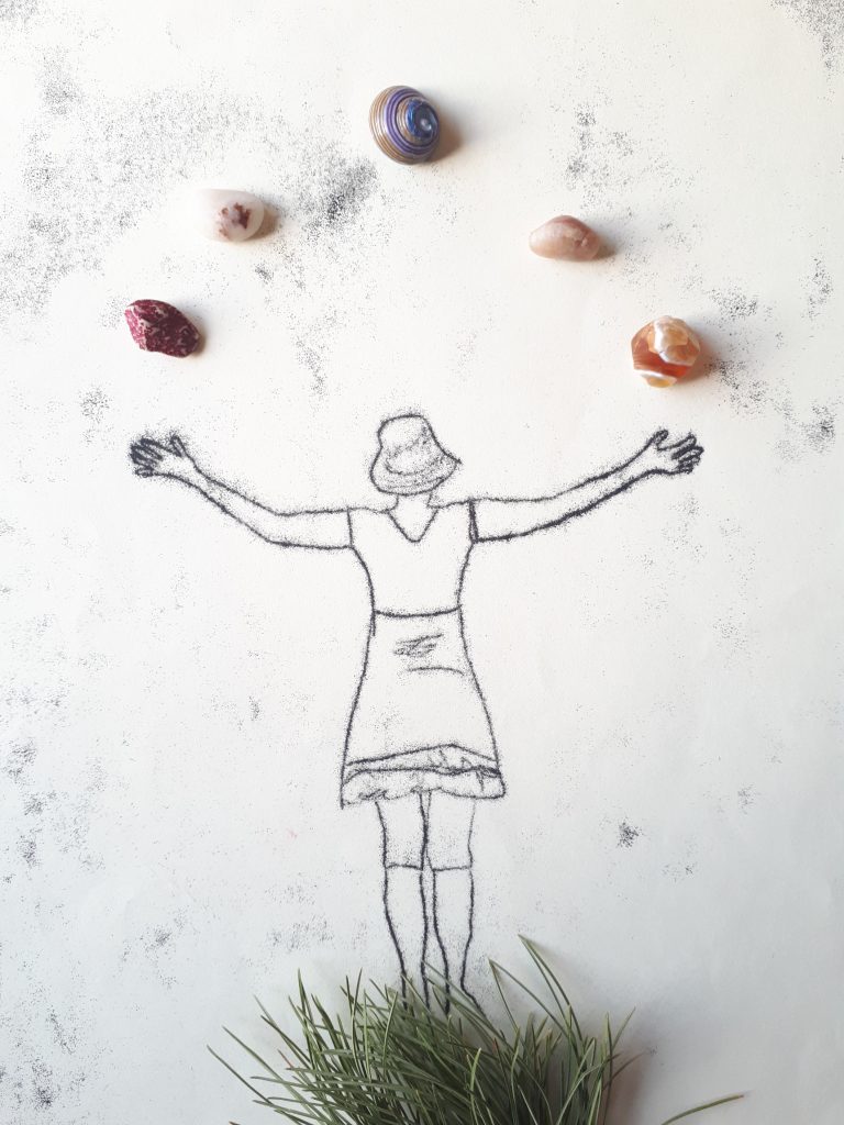 En ce qui concerne l’aspect plastique de sa démarche, elle utilise le mouvement, le rythme, la répétition et la superposition pour composer ses oeuvres. Elle cherche à proposer un langage visuel qui absorbe le regard et l’esprit dans une contemplation sensorielle. Quant à l’aspect réflexif, elle s’intéresse à la notion de présence attentive et à la pleine conscience de l’être en relation avec l’environnement.